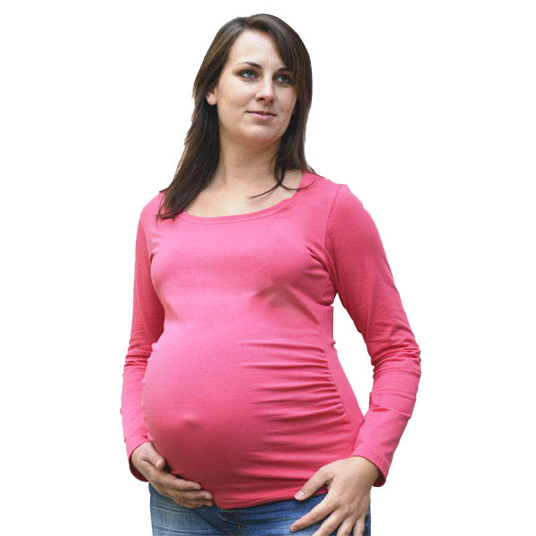 Pohodlné dámské těhotenské tričko delšího střihu s kulatým výstřihem a s dlouhými rukávy. Vysoký podíl bavlny zajišťuje příjemné nošení. Díky elastanu a efektivnímu bočnímu nařasení je tričko velmi pružné a přizpůsobí se tak rostoucímu bříšku. Objednávej proto takovou velikost, jakou jsi nosila před těhotenstvím.